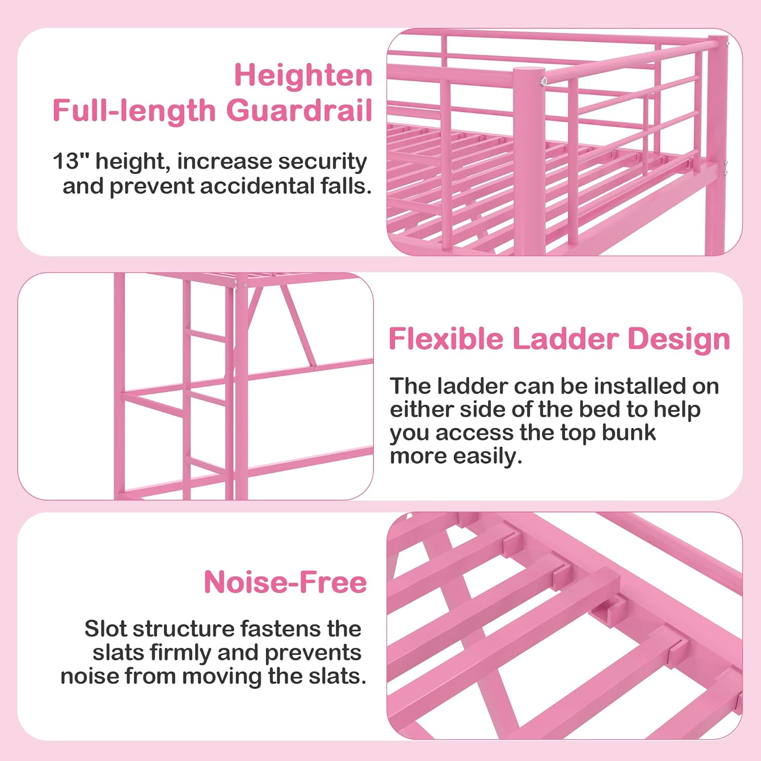 【Safety Loft Bed】The upper bed is equipped with 13 inches heightened guardrails, ensuring security throughout the night, preventing accidental falls. To better adapt to your room, we have designed a ladder as a structure that can be installed on both sides to ensure easy and convenient access to the upper bunk.