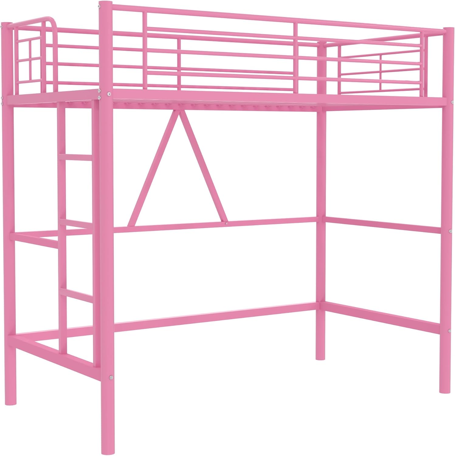 VECELO Metal Twin Size Loft Bed with Removable Ladder and Safety Guardrail