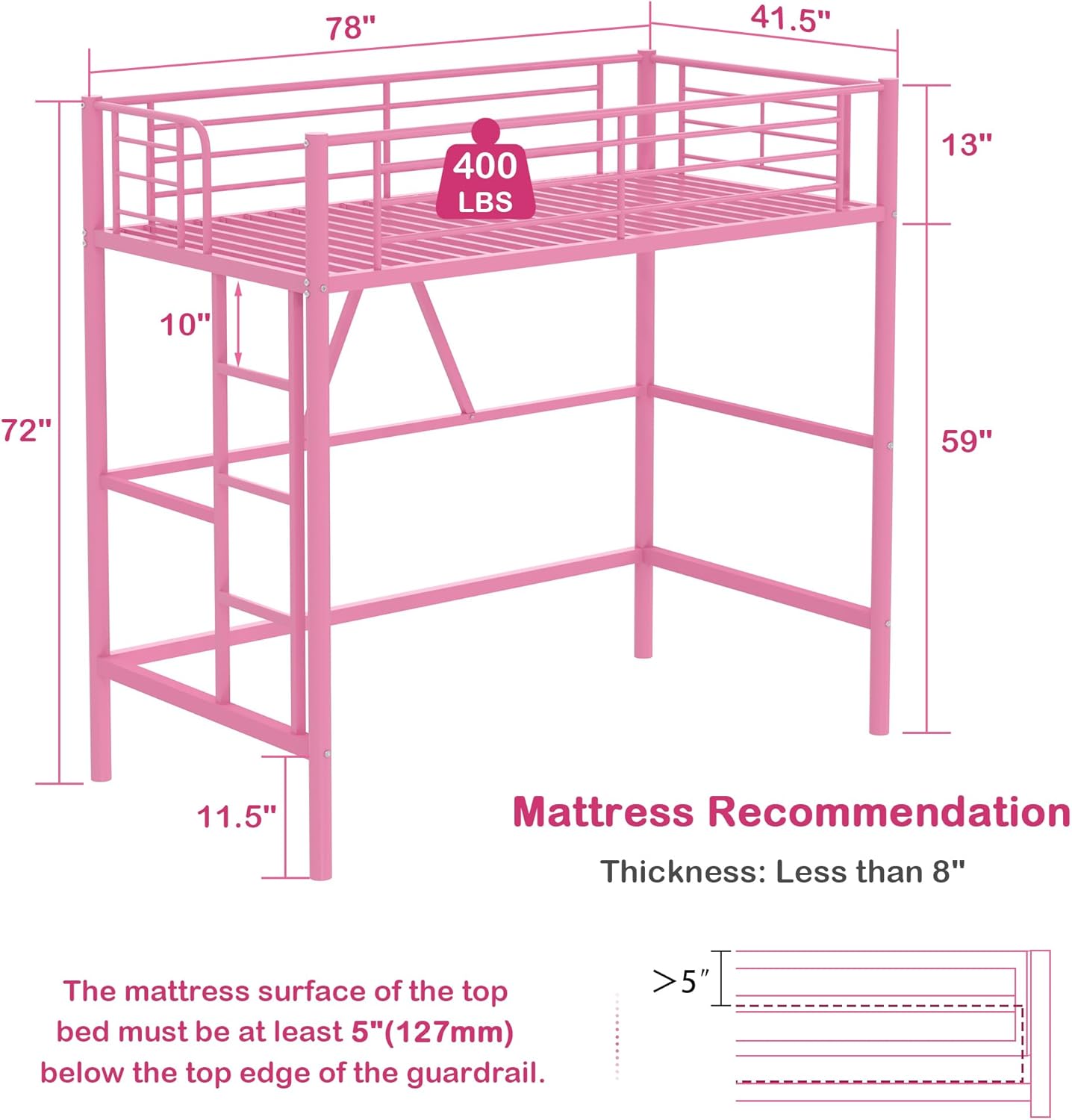 Stability and Safety – Loft beds offer maximum safety with a sway-proof heavy-duty metal frame and heightened guardrails. Anti-tip nails can securely fasten the bed to the wall.