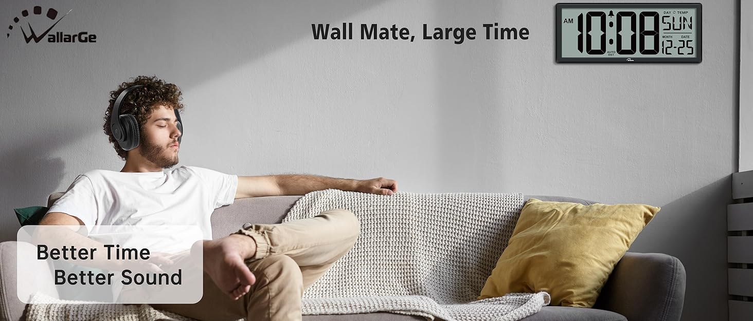 Digital Wall Clock Large Display – The LCD screen measures 6.2 in x 3.7 in and it displays time, indoor temperature, day and date. Each section is showed separately, allows you to read the content easily and quickly.