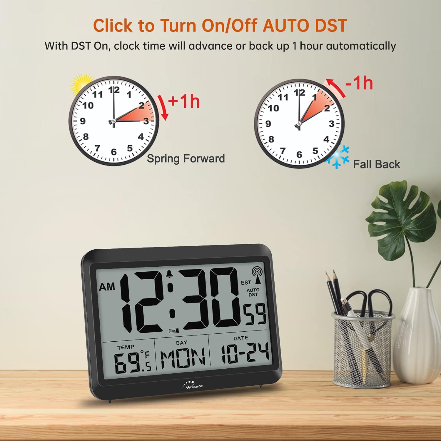 Atomic Clock Digital – The clock has a built-in receiver that automatically synchronizes itself with WWVB radio broadcast, which will set and update time automatically every midnight, no need to set manually. It has four time zones selectable: EST, PST, MST, CST.