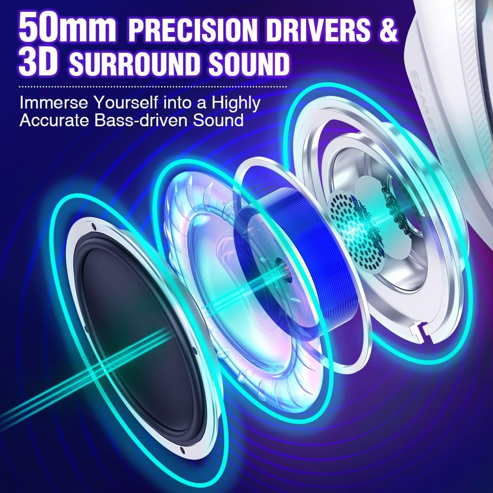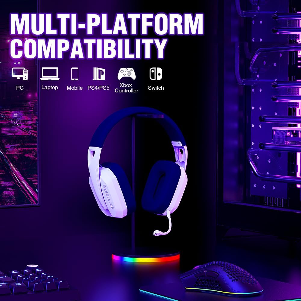 Wireless Gaming Headset for PS5, PS4, PC, Mac, Switch, Bluetooth Over-Ear Headphones with Detachable and Built-in Mics, Low Latency, Lightweight, Noise Isolation, 48H Battery