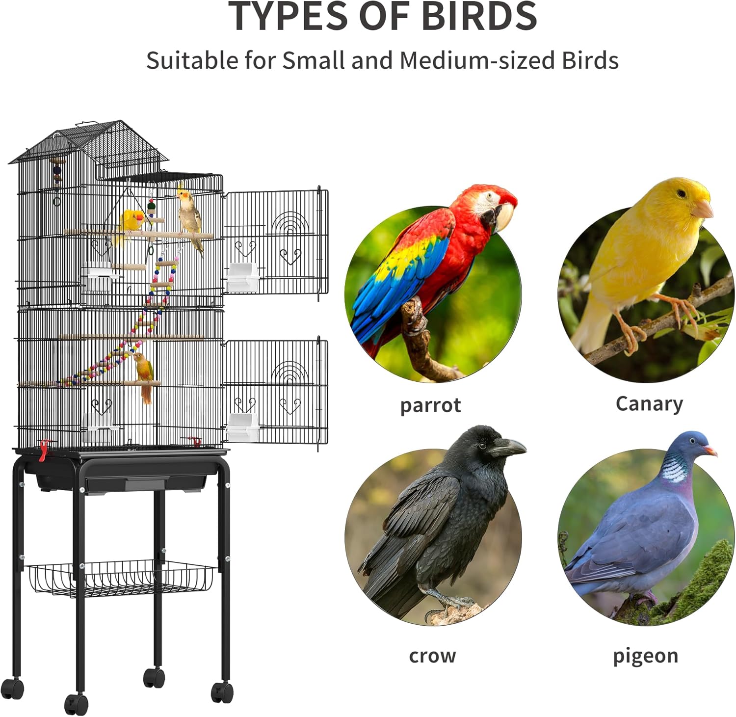 YITAHOME 62 Inch Large Bird Cage​ – ​Metal Flight Cage​ with ​Rolling Stand, ​Feeding Doors​ & ​Hanging Accessories​ for ​Parrots ​Cockatiels Conures ​Lovebirds ​Parakeets​ ​Small Birds