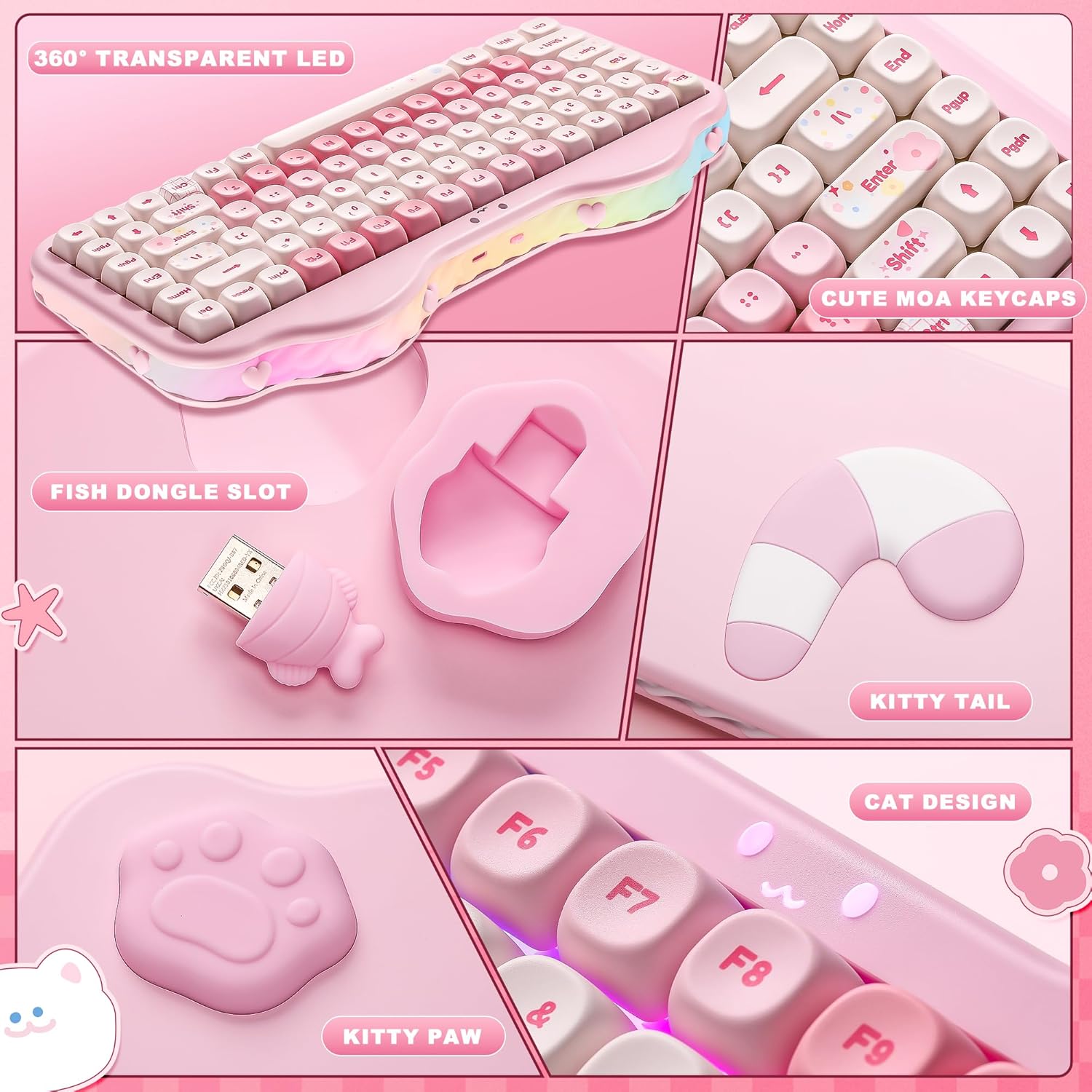 Creamy Keyboard with Gasket Structure: This cute mechanical gaming keyboard takes gasket structure and multiple layers of sound-absorbing fillings, pre-lubed mechanical switches, stabilizers and solid silicone eliminate typing noise, creating a solid creamy mechanical keyboard. Enjoy smooth and consistent keystrokes with a pleasantly Creamy sound of the thocky keyboard that enhances your typing comfort